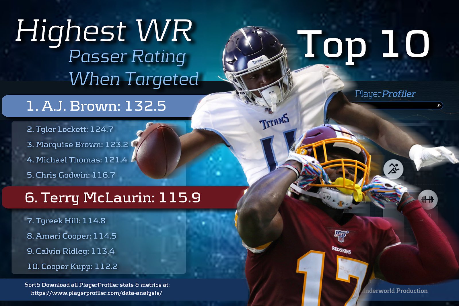 Rotounderworld On Twitter Highest Wr Passer Rating When Targeted 1 A J Brown 132 5 2 Tyler Lockett 124 7 3 Marquise Brown 123 2 4 Michael Thomas 121 4 5 Chris Godwin 116 7 6 Terry Mclaurin